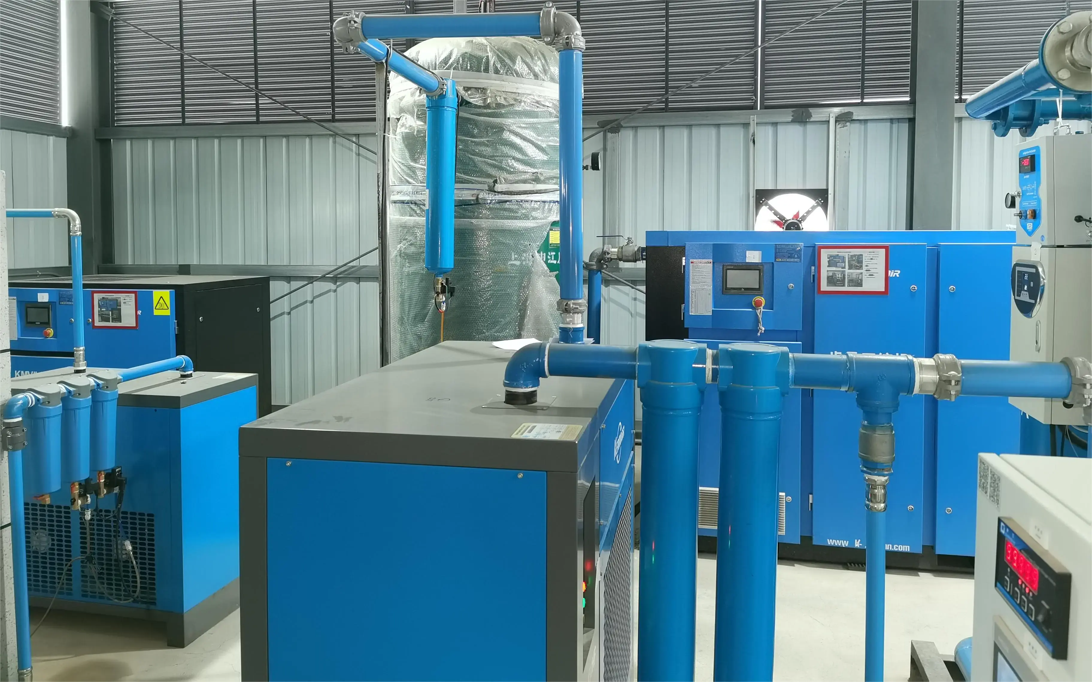 產(chǎn)品出廠時(shí),機(jī)器中已充滿壓縮機(jī)油,若安裝就位后,接通電源,即可投入運(yùn)行,通過帶背光的液晶屏幕,清晰的現(xiàn)實(shí)機(jī)器的運(yùn)行狀態(tài)。